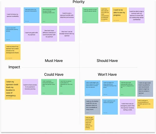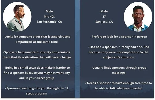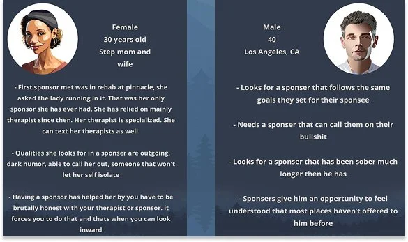 Users valued a sponsor that matched their specific recovery needs, and preferred clear communication options—text and in-person were most favored.